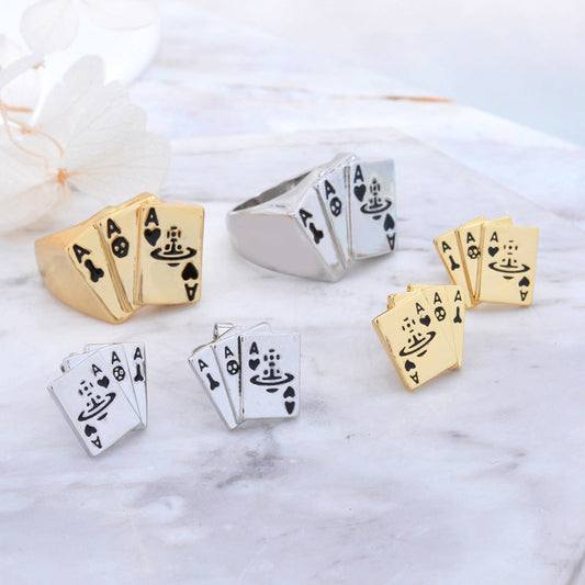Vivienne Westwood niche playing cards Japanese and Korean simple punk ear rings