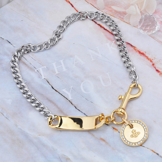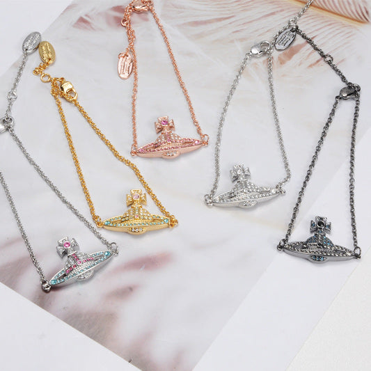 Vivienne Westwood color matching full diamond bracelet ins cold Style Advanced