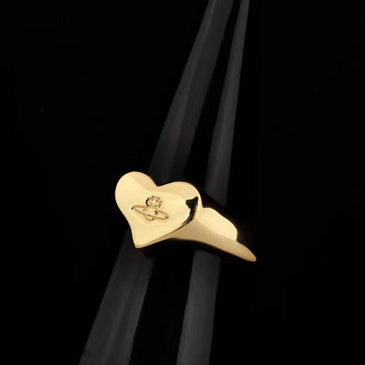 Vivienne Westwood steel seal Saturn lettering heart love heart ring rings