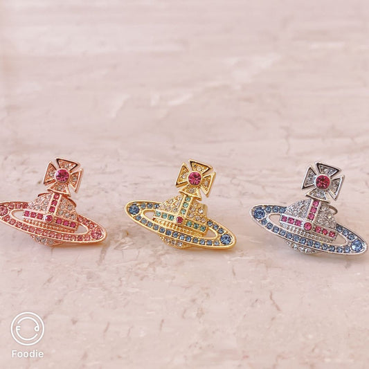 Vivienne Westwood gold-plated diamond-embedded Saturn simple INS gold and silver color ring rings New