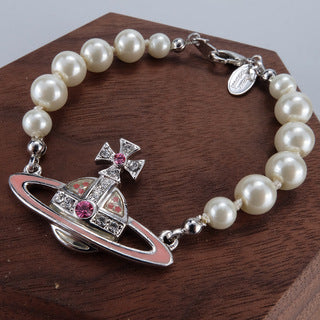 Vivienne Westwood pink paint diamond pearl bracelet college style all-match punk