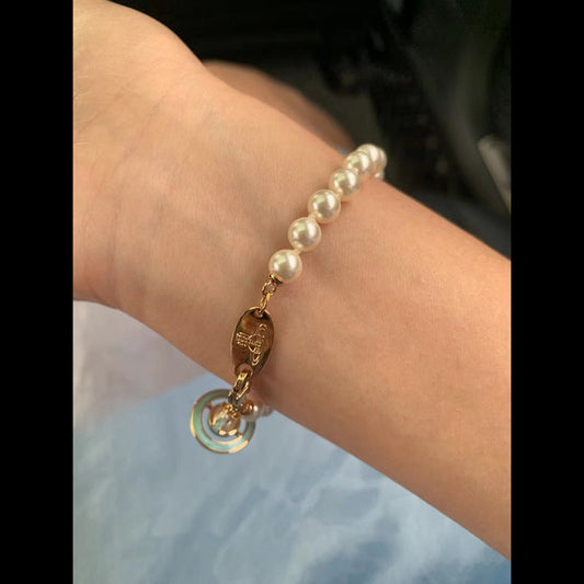 Vivienne Westwood freshwater natural pearl bracelet elegant high sense girl heart
