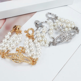 Vivienne Westwood three-layer pearl bracelet gold silver high-grade