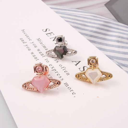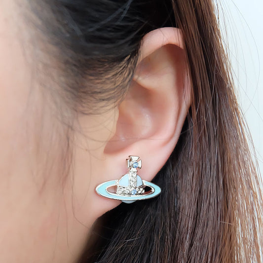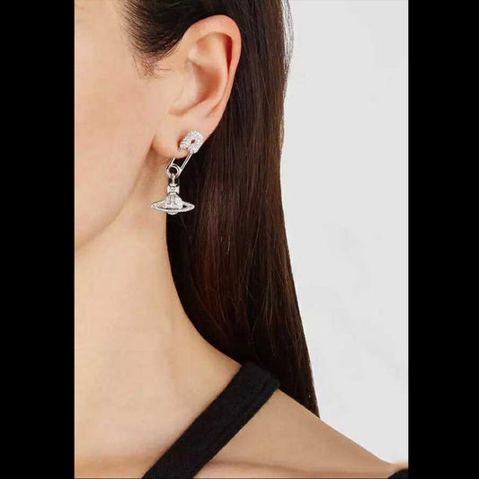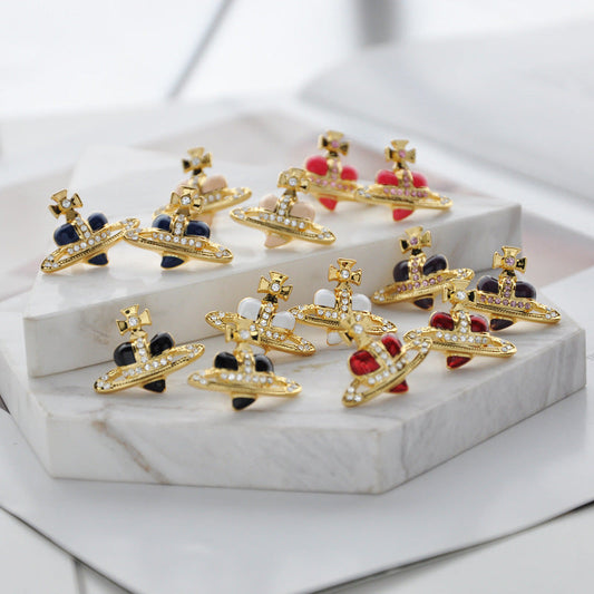 Vivienne Westwood two-tone epoxy Japanese and Korean inlaid Diamond affordable luxury fashion earrings