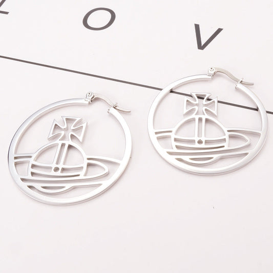 Vivienne Westwood large circle hollow earrings colorfast ear studs
