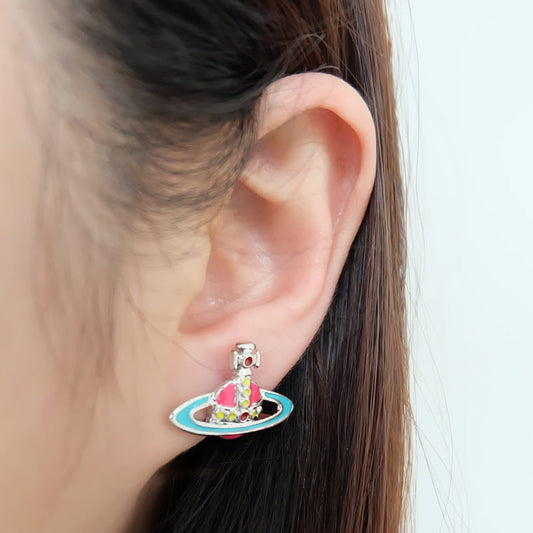 Vivienne Westwood two-color paint stud earrings punk light luxury earrings