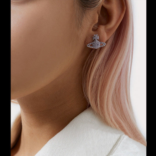 Vivienne Westwood small LOGO stud earrings full of diamonds exquisite