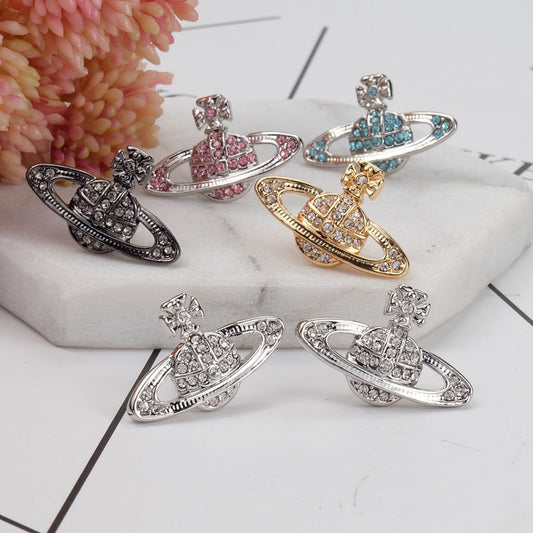 Vivienne Westwood classic full diamond orb stud earrings ins simple personalized all-match