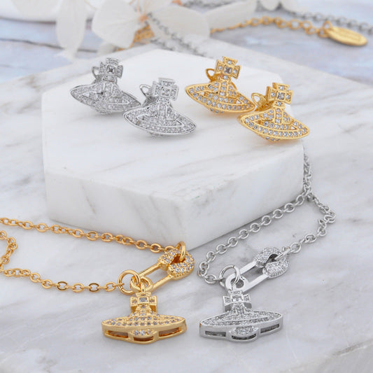 Vivienne Westwood return pin earrings full diamond exquisite luxury