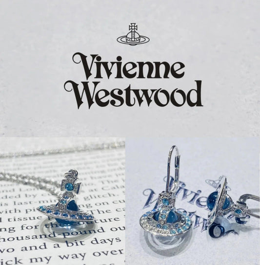 Vivienne Westwood three-dimensional gradient blue bracelet earrings women's high-grade versatile