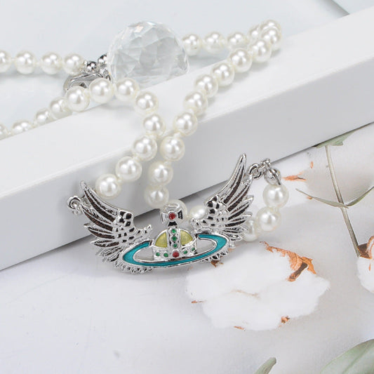 Vivienne Westwood Pearl flying wings pendant necklace personality European and American punk