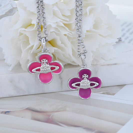 Vivienne Westwood four-leaf clover flower pendant necklace sweet exquisite and versatile