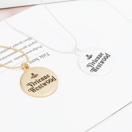 Vivienne Westwood simple hollow-out large LOGO pendant necklace couple ins