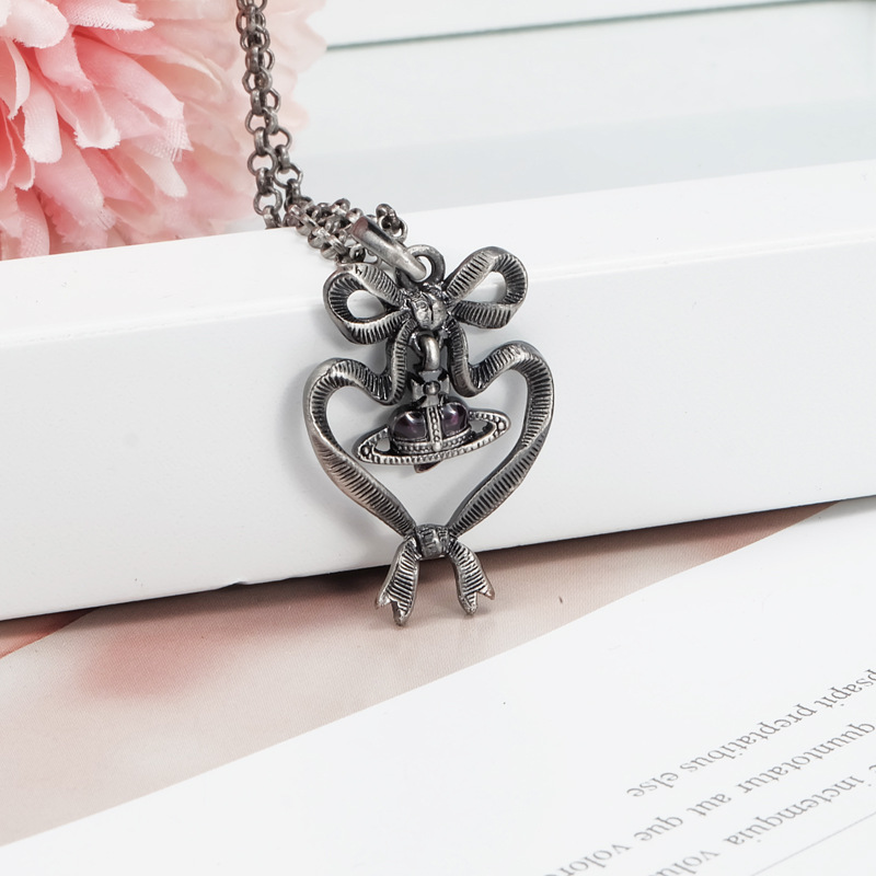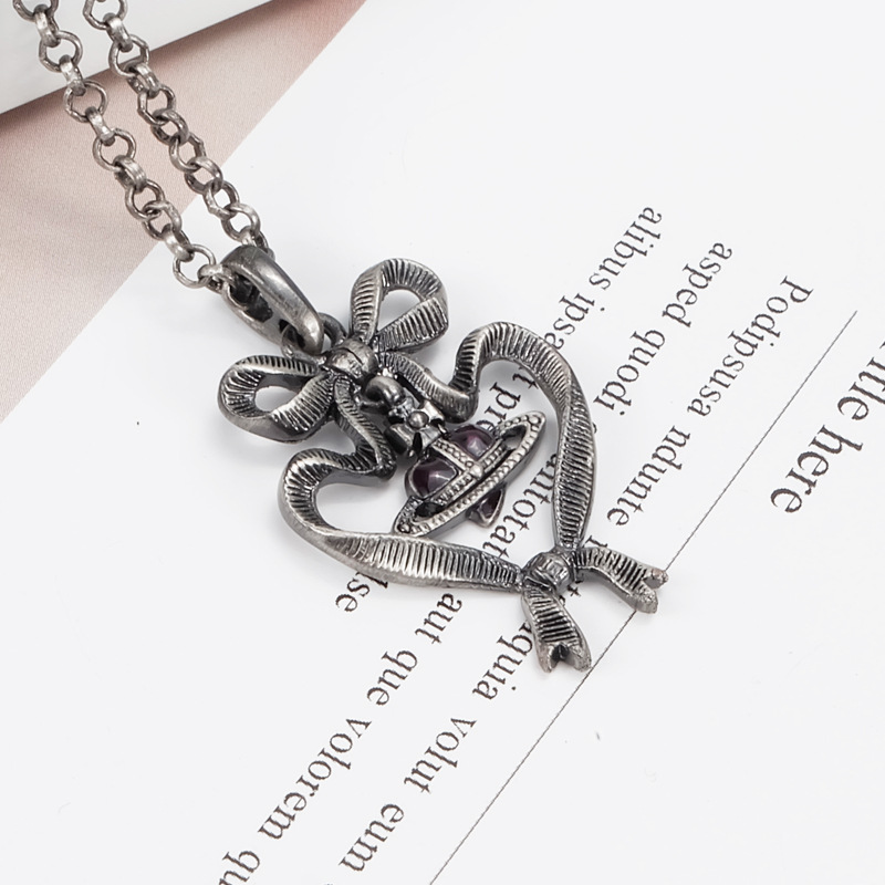 Vivienne Westwood bow love purple diamond pendant necklace niche temperament