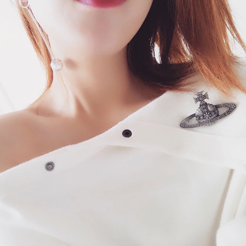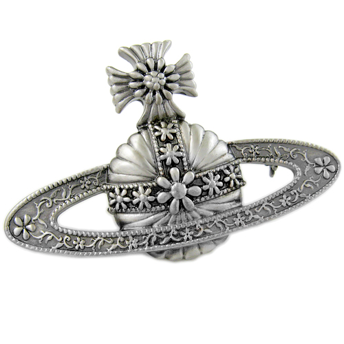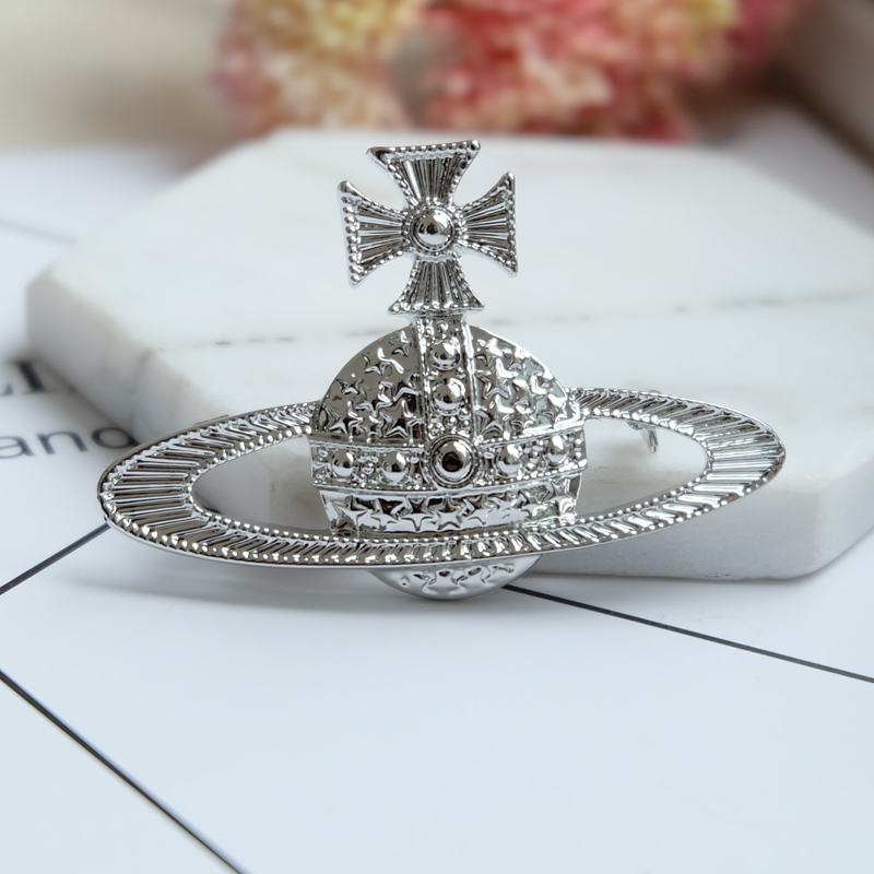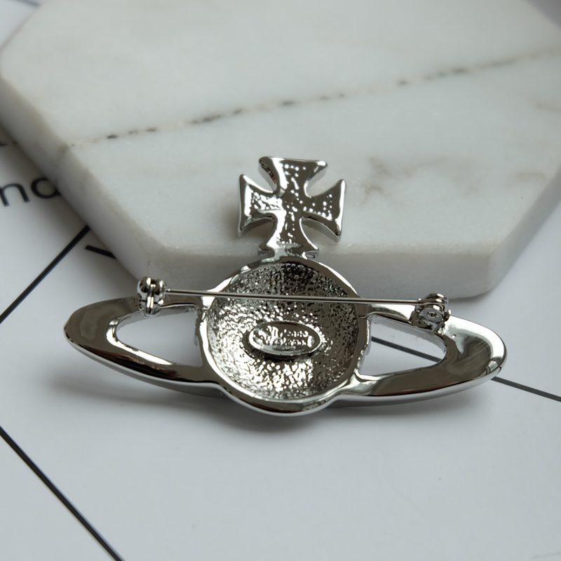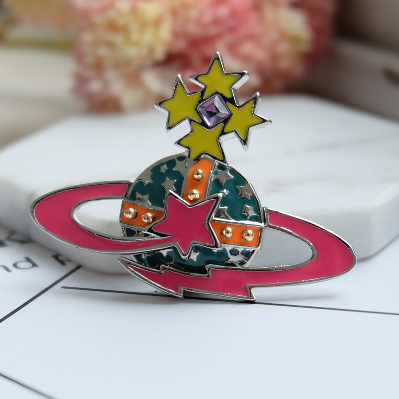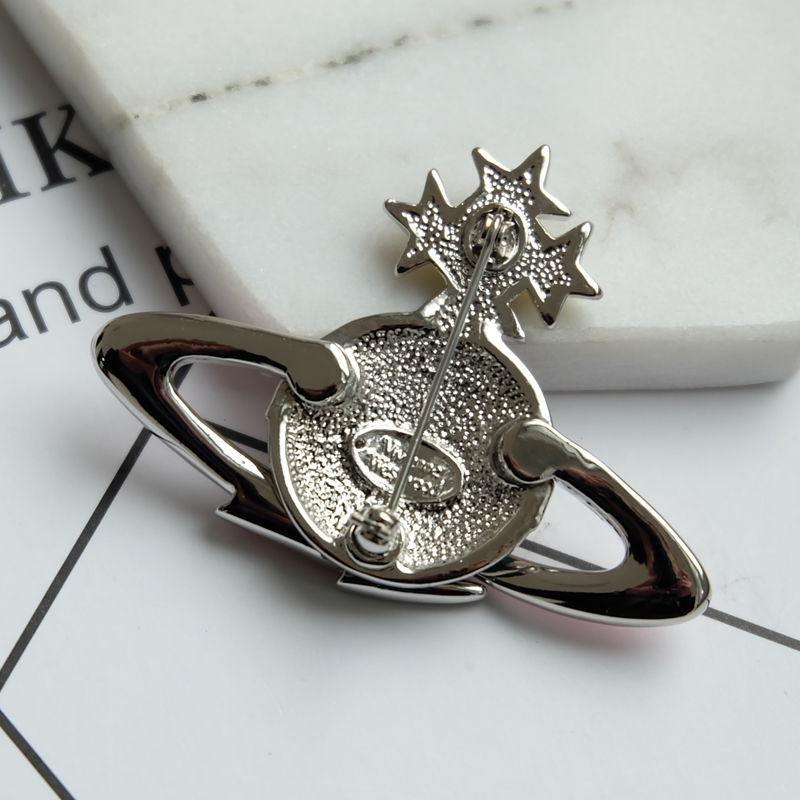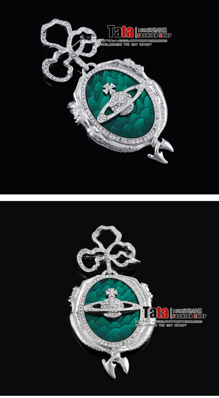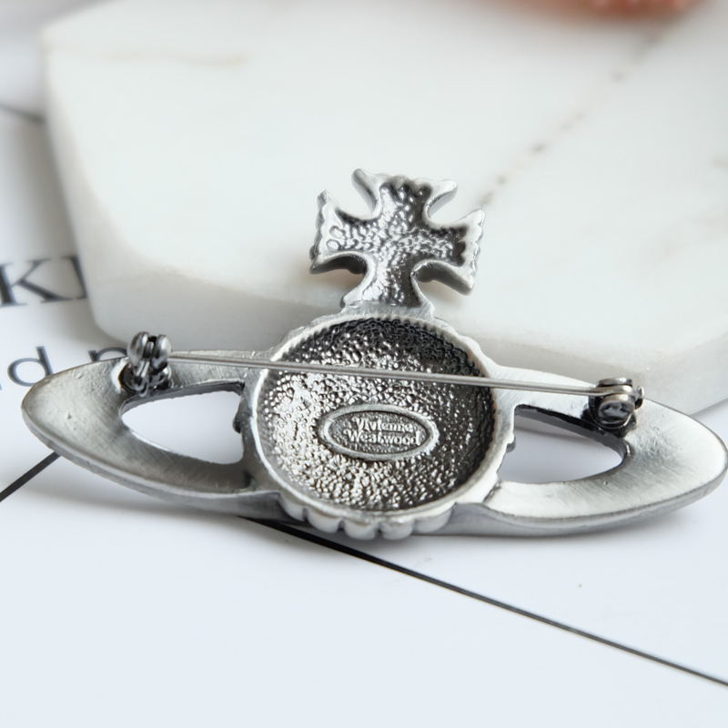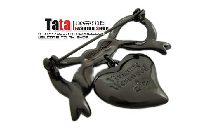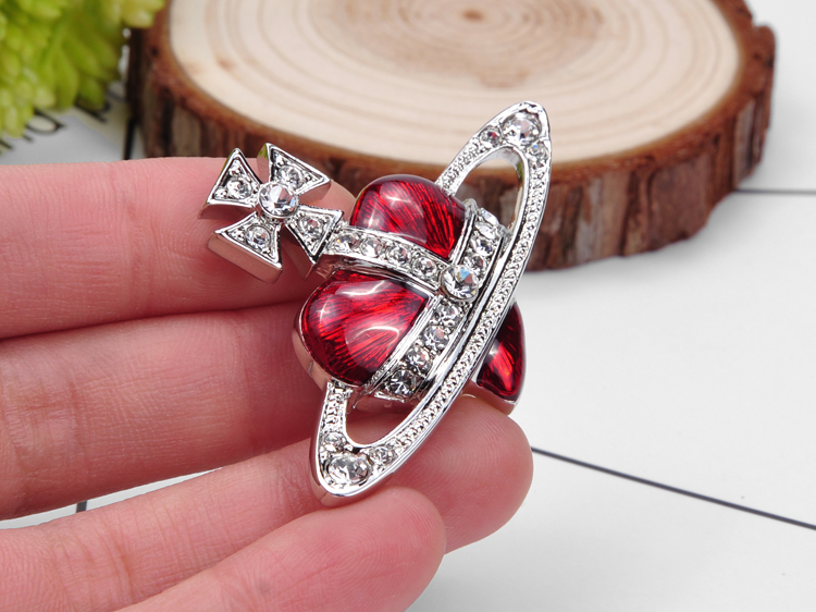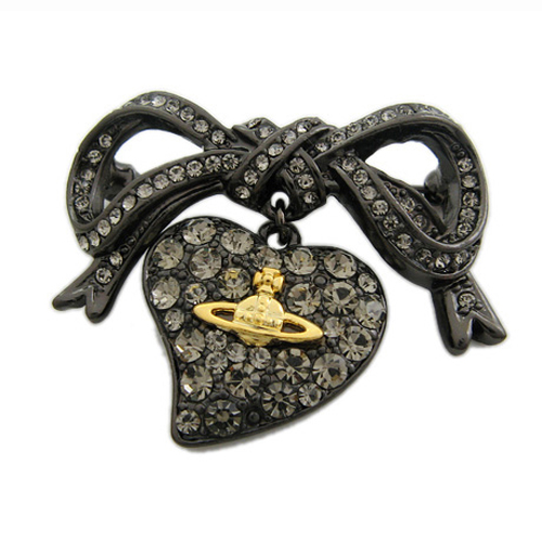 Vivienne Westwood dark red love meteor antique silver bow starry medal brooch
