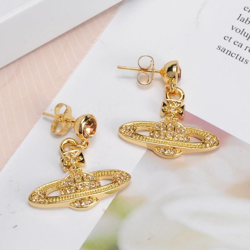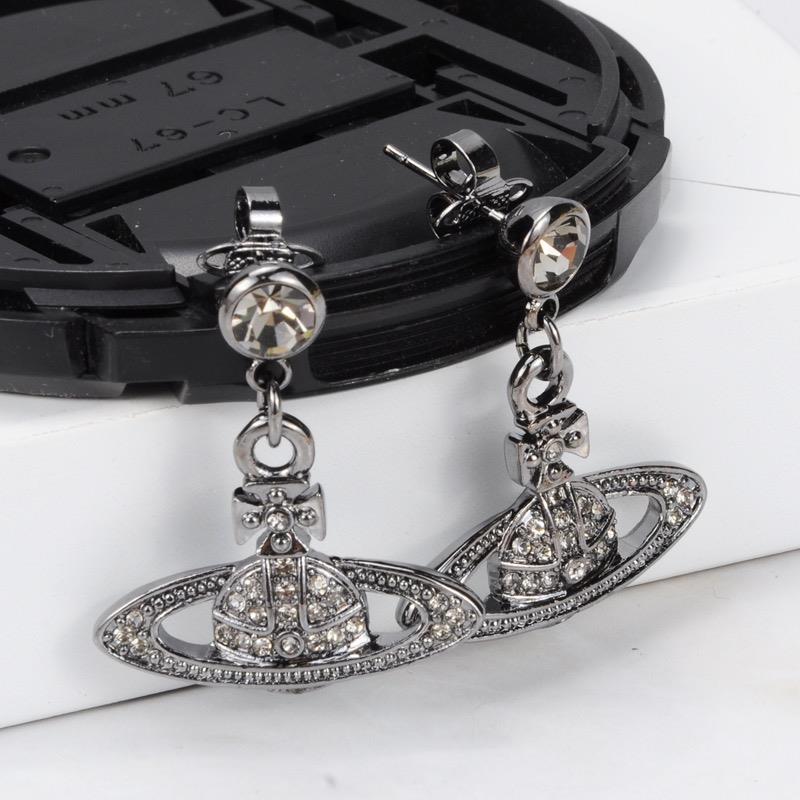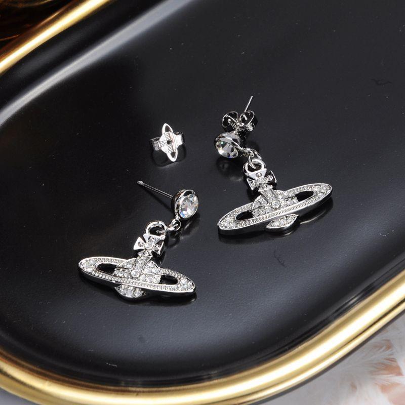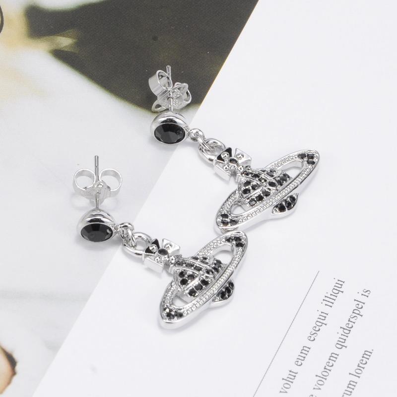 Vivienne Westwood ear studs European and American punk fully-jeweled crystal earrings personality