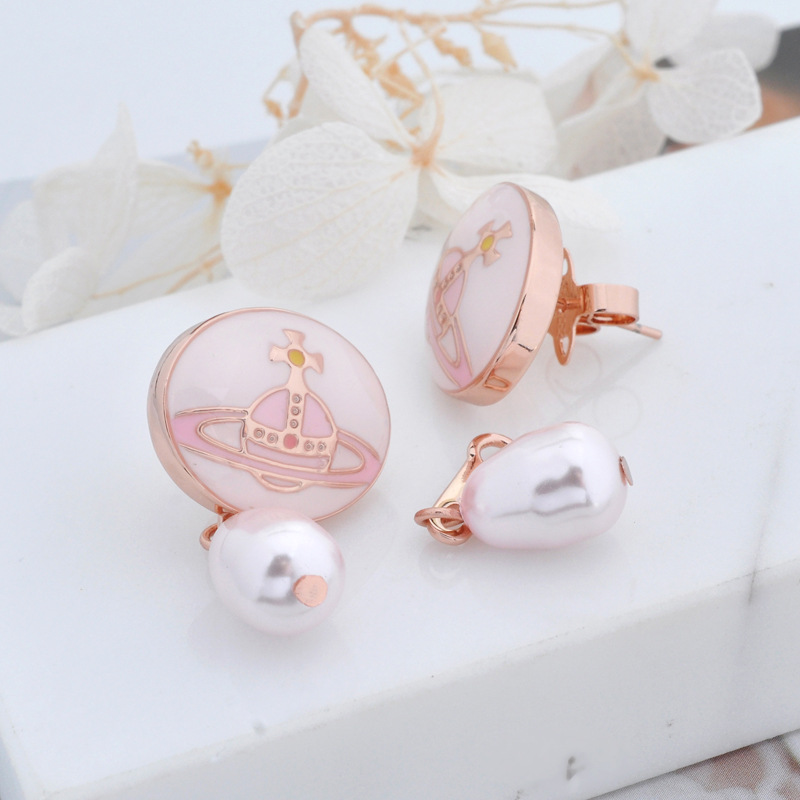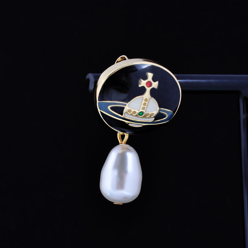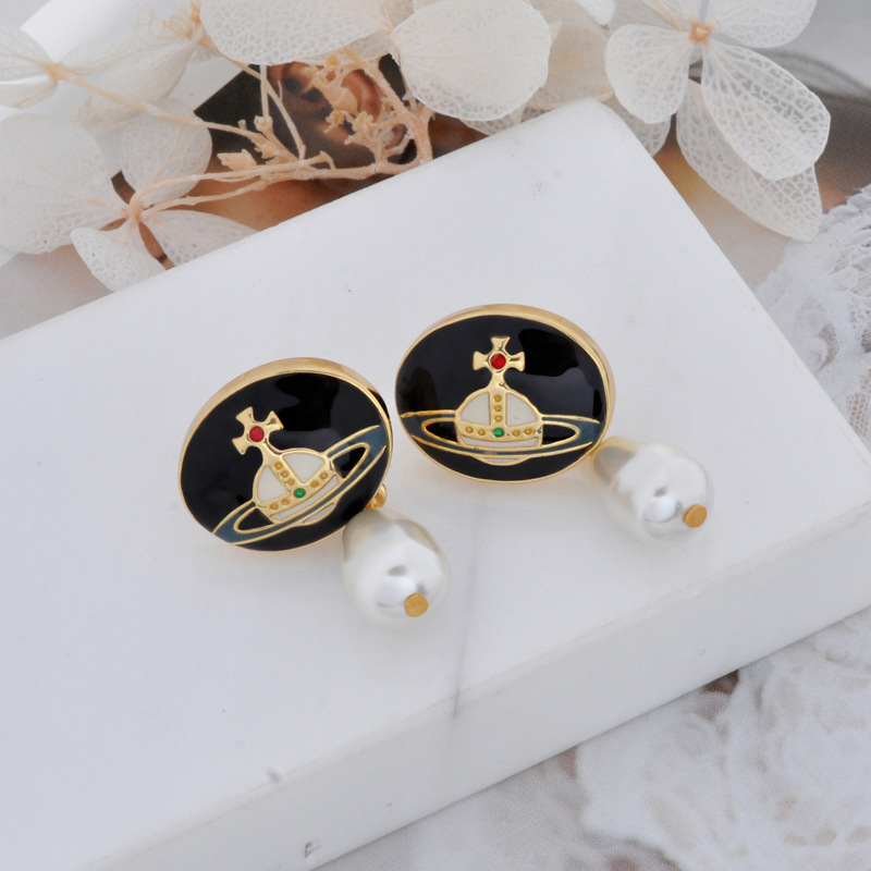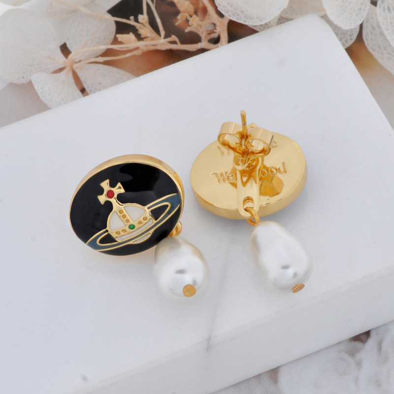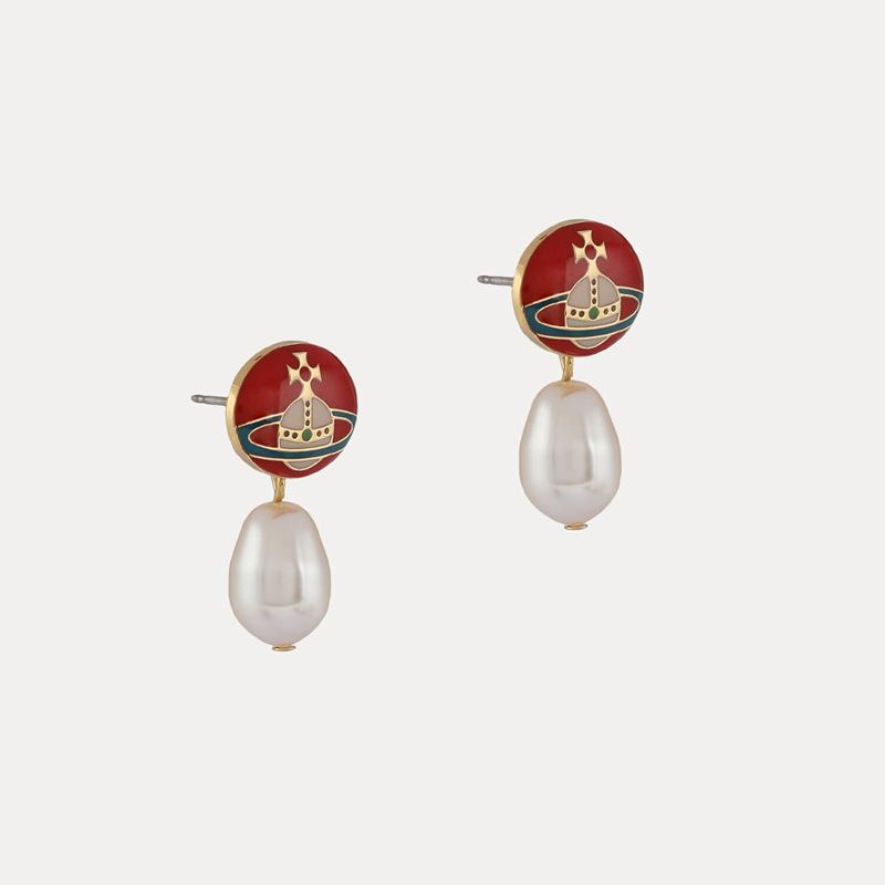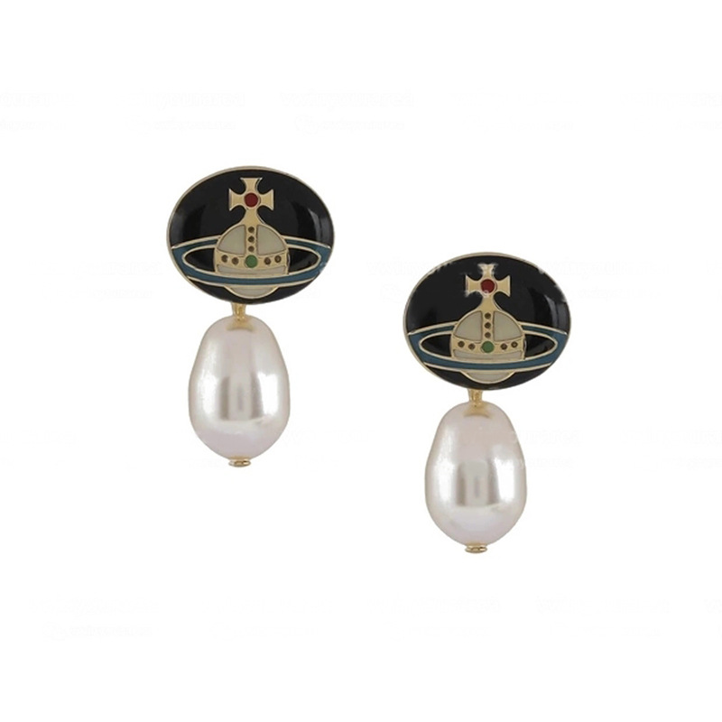 Vivienne Westwood enamel buckle removable Pearl delicate earrings