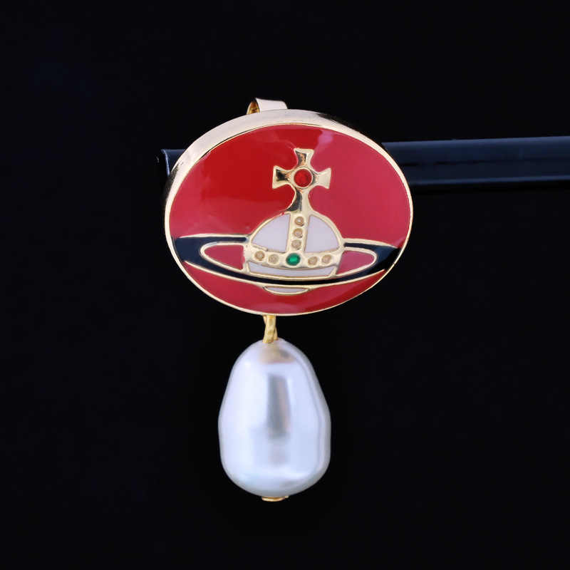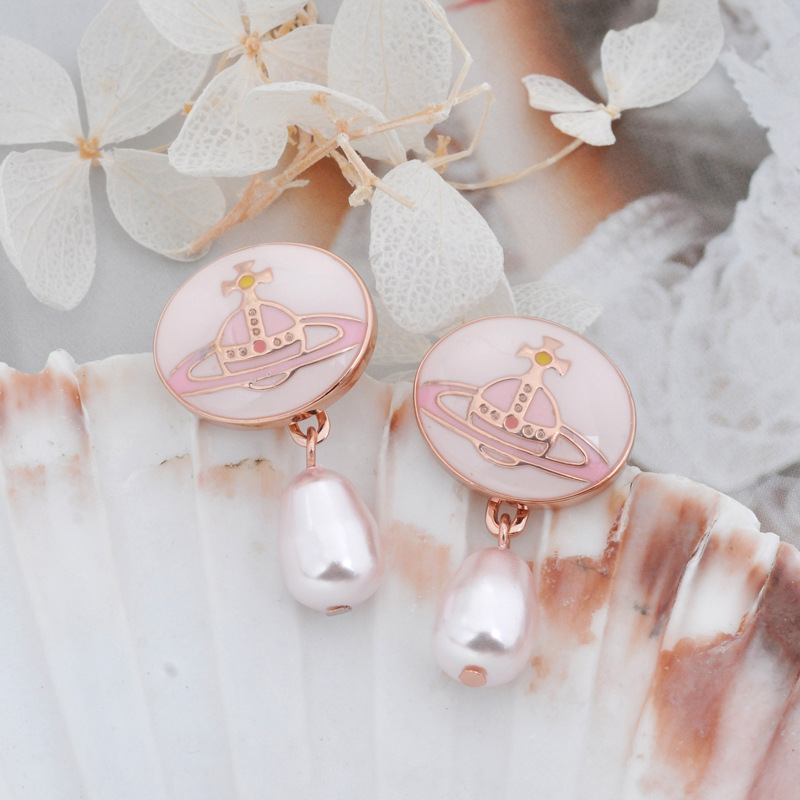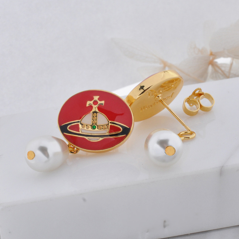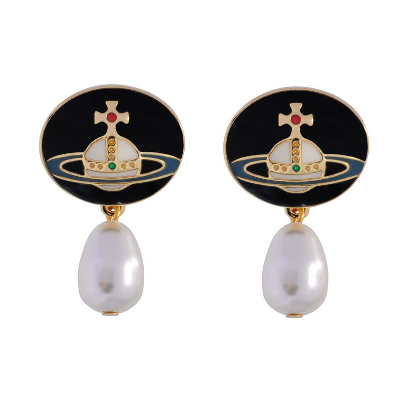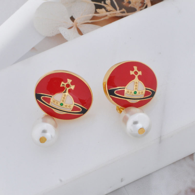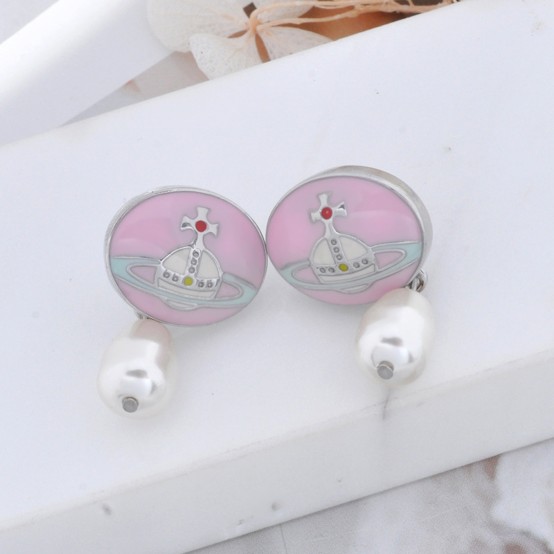 Vivienne Westwood enamel buckle removable Pearl delicate earrings
