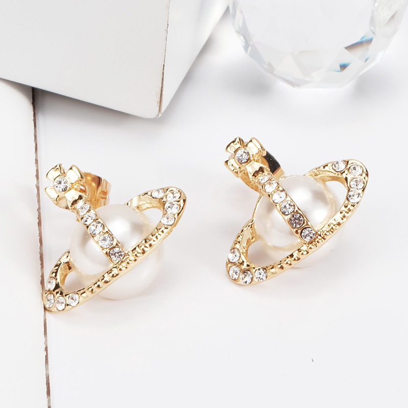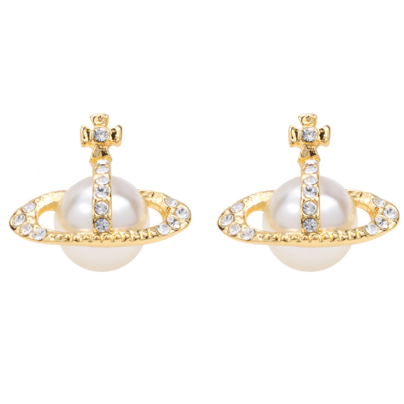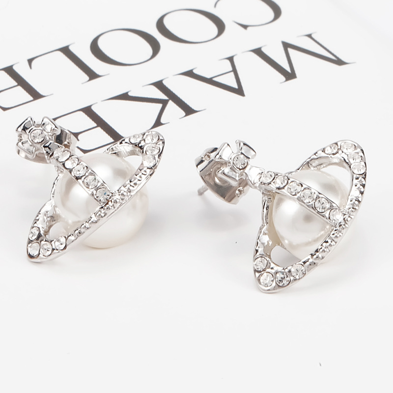 Vivienne Westwood half-face diamond pearl stud earrings luxury high-end