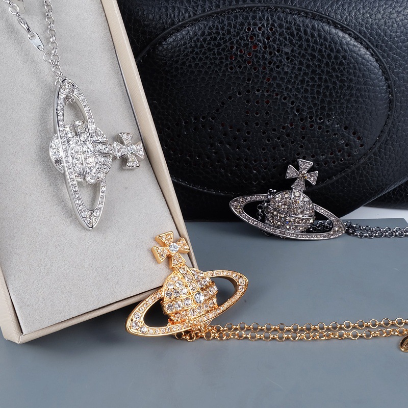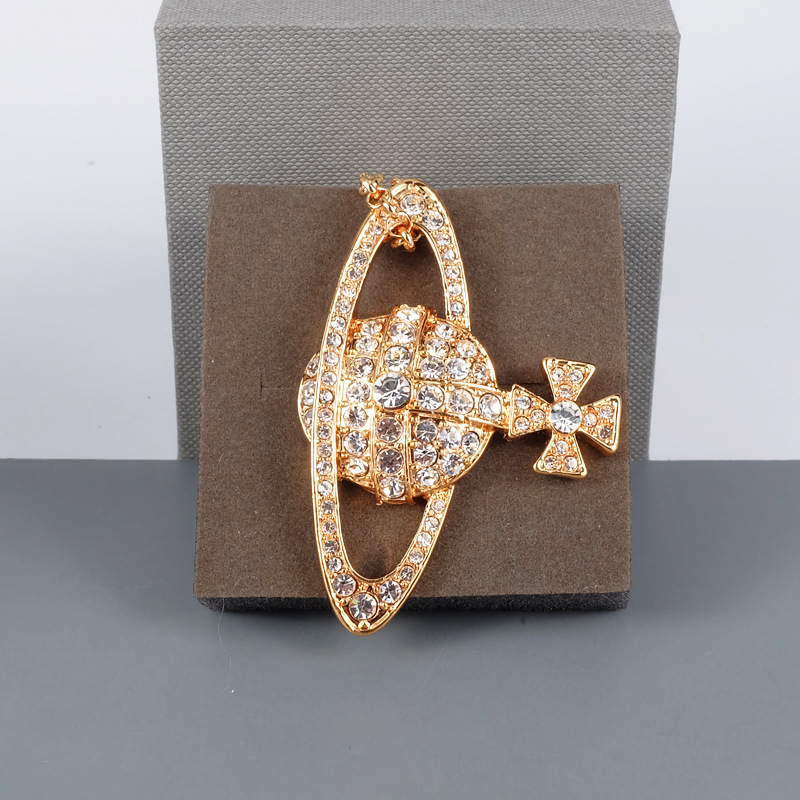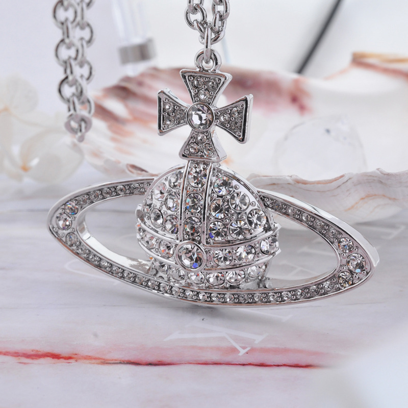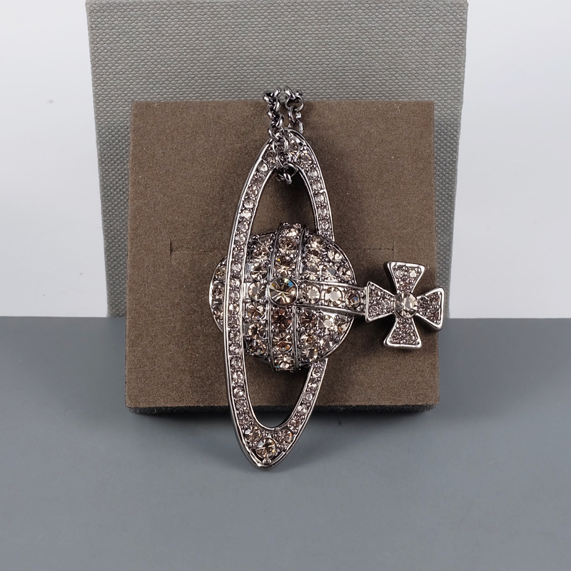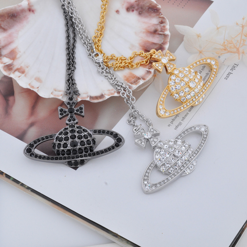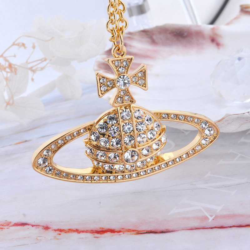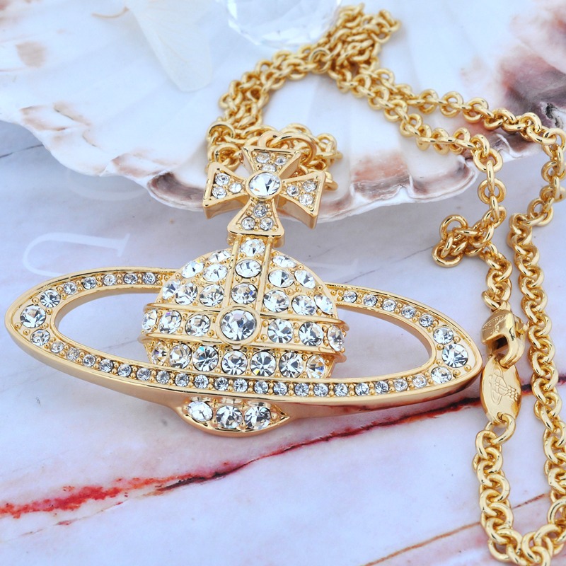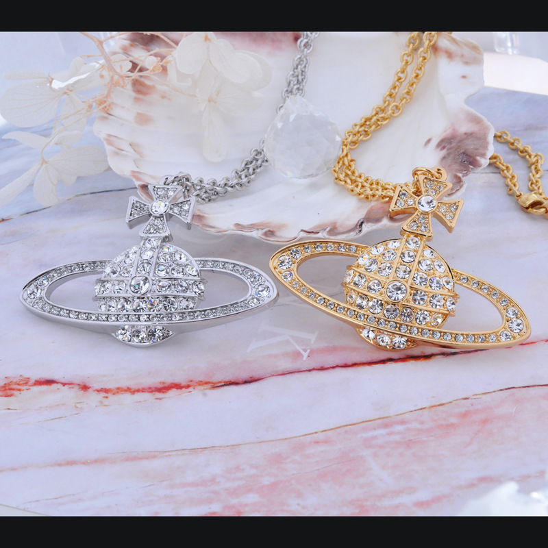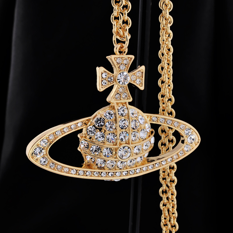 Vivienne Westwood hanging full diamond large pendant necklace personality punk