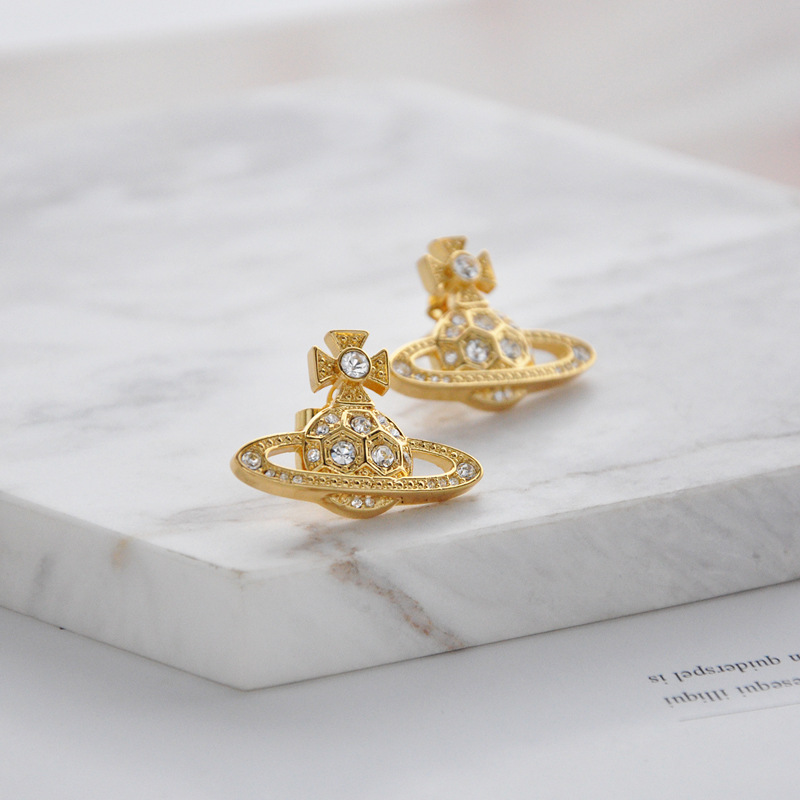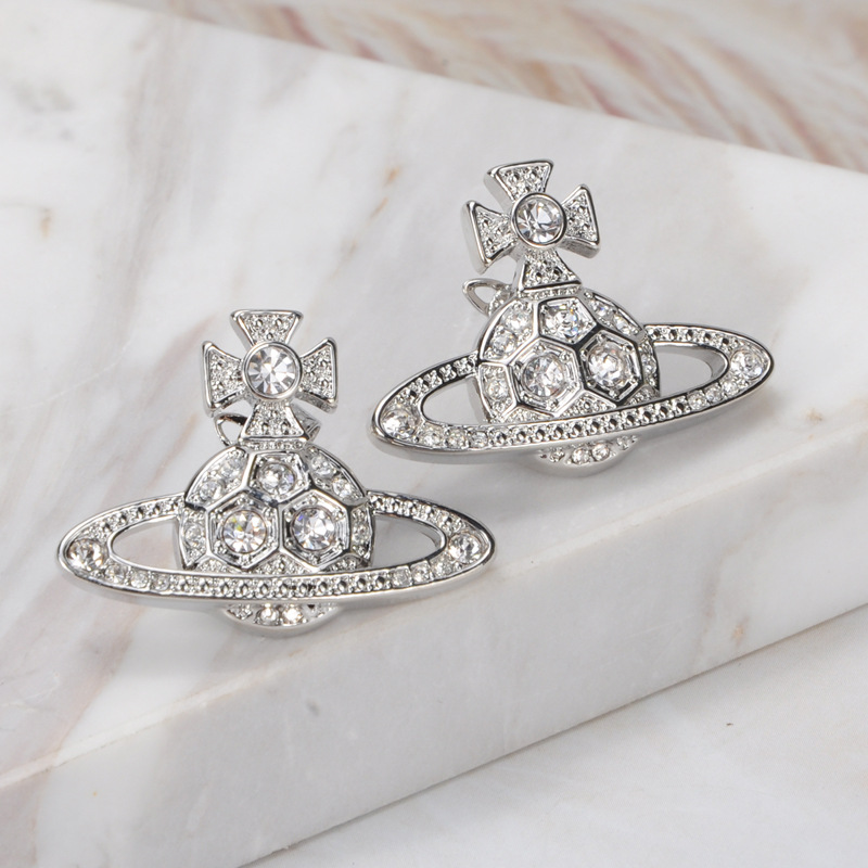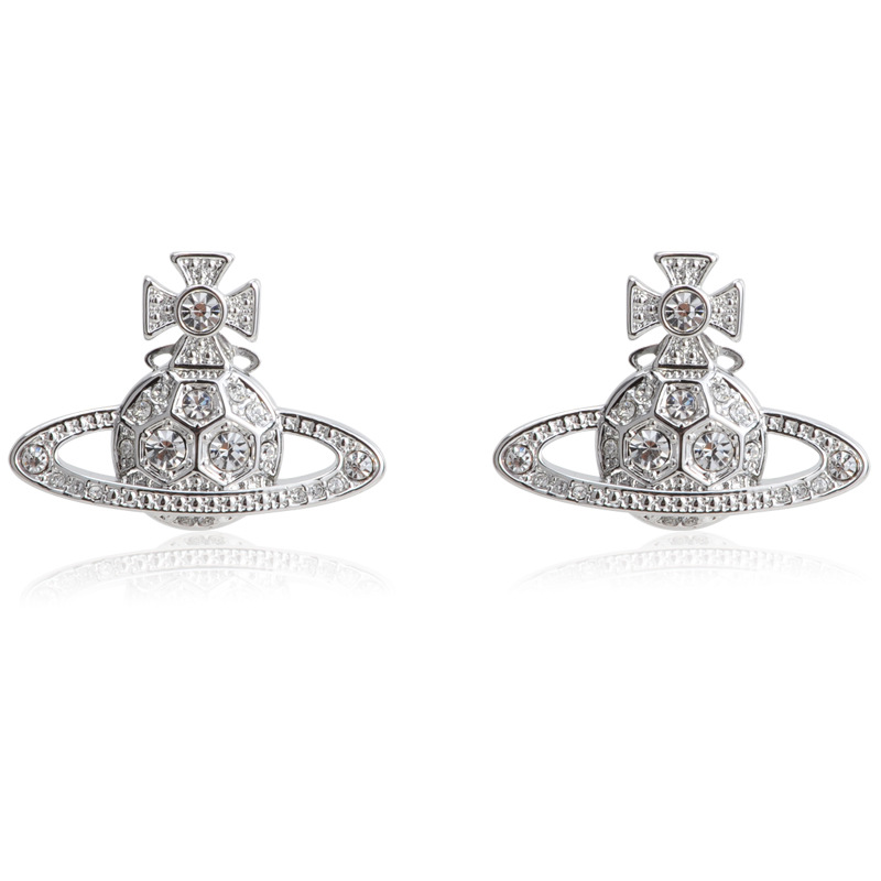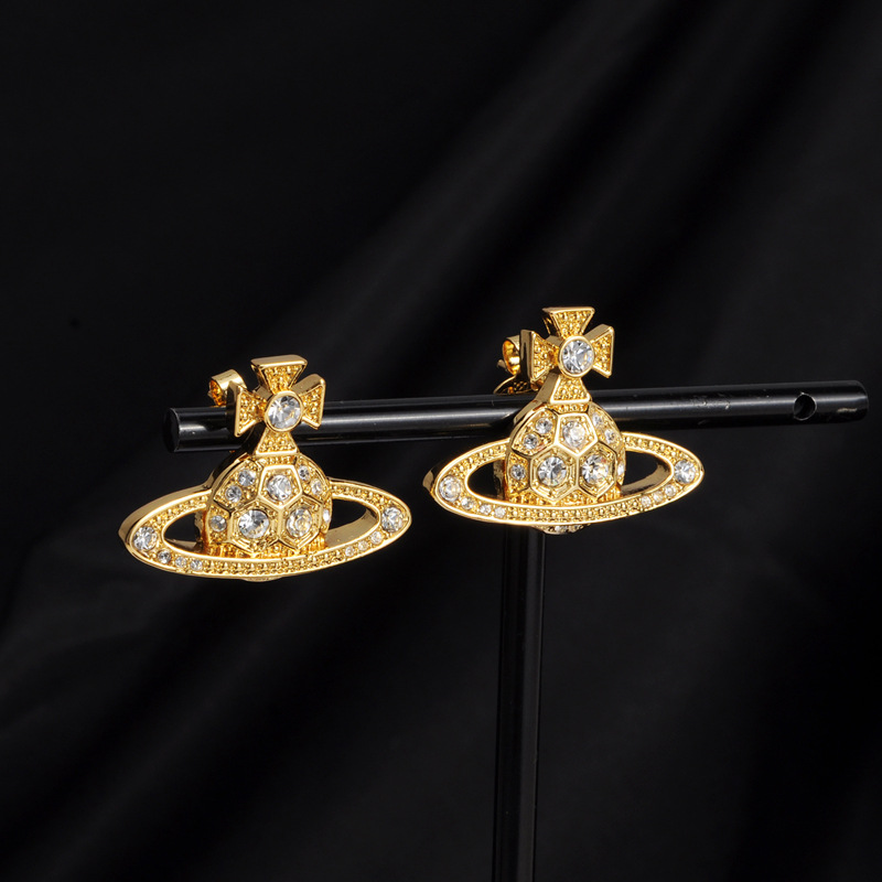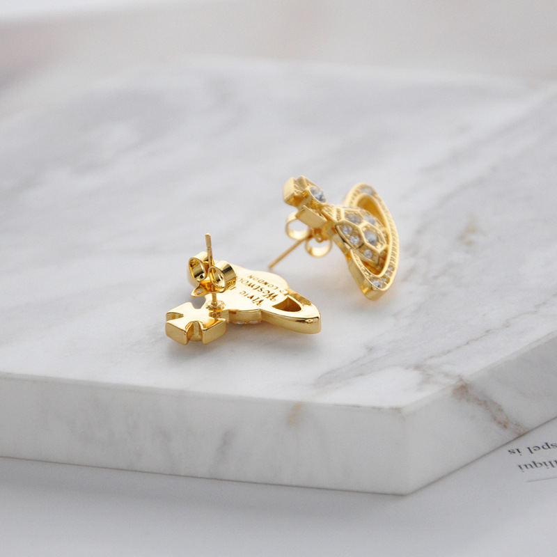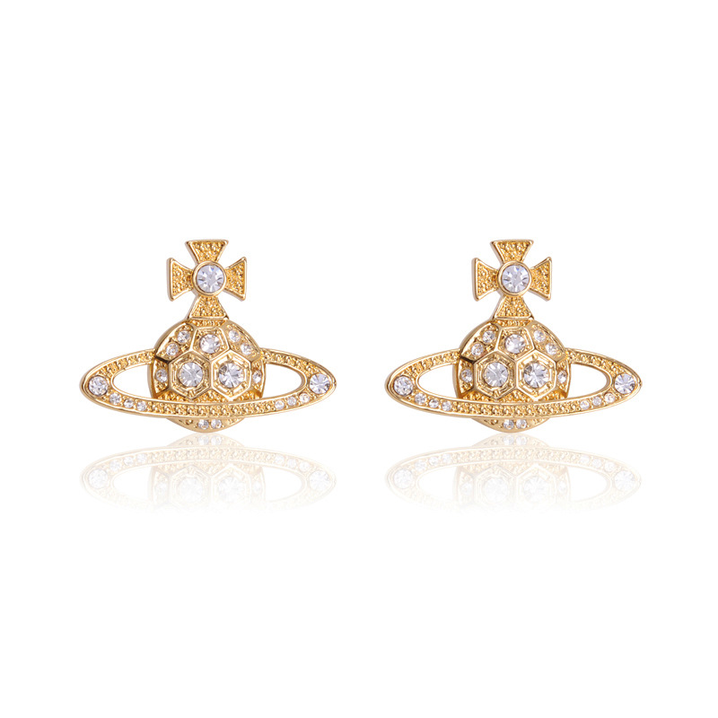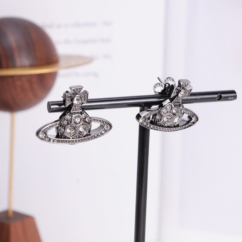 Vivienne Westwood honeycomb stud earrings with Diamond light luxury punk ins earrings