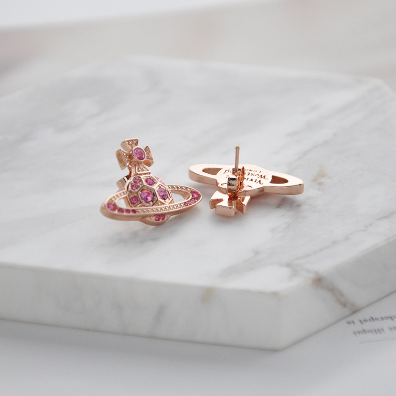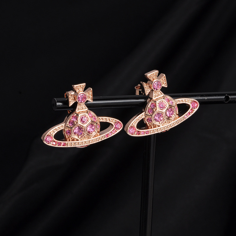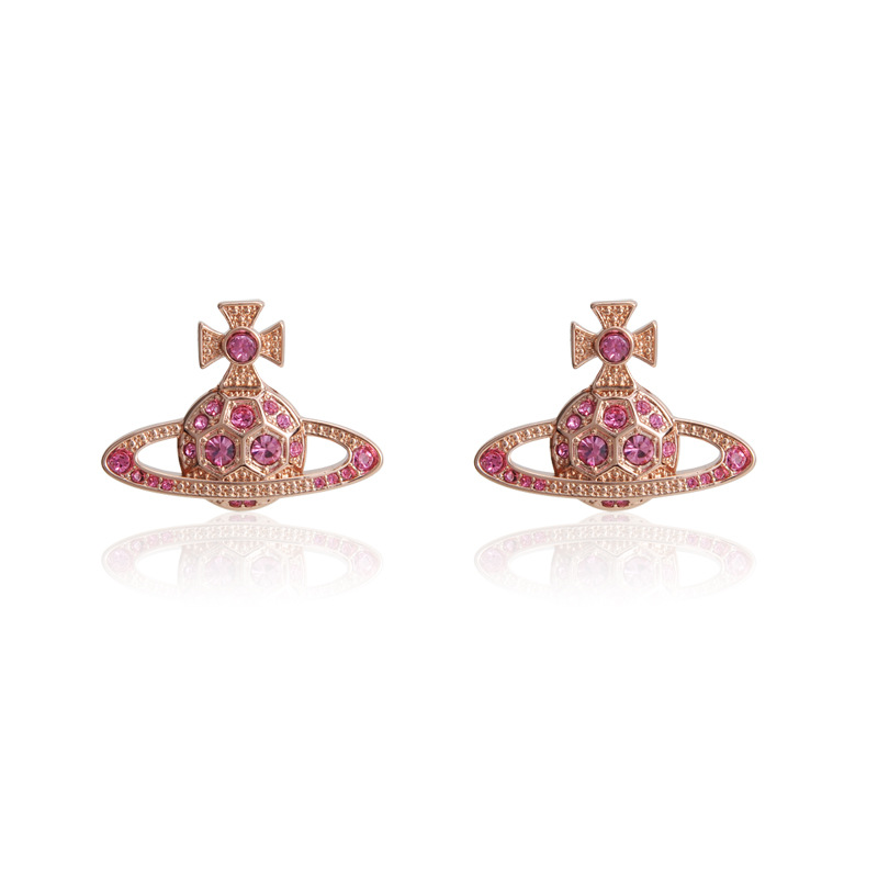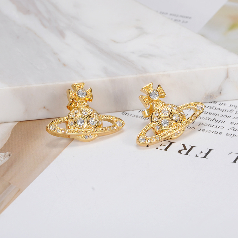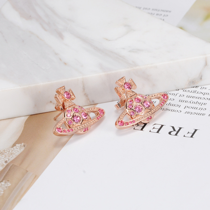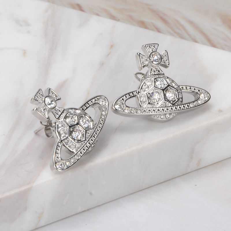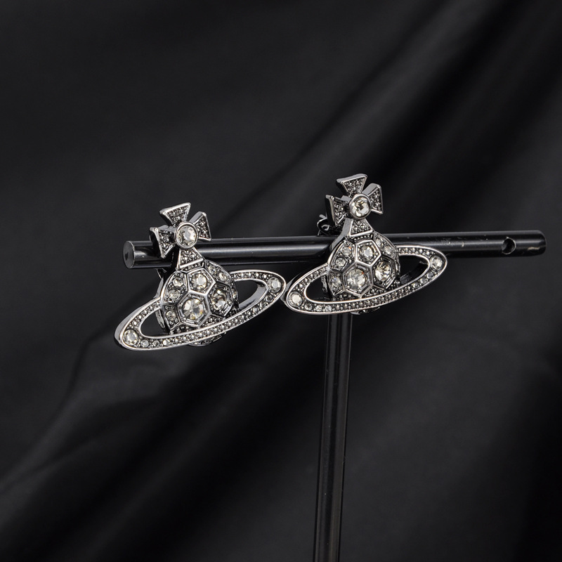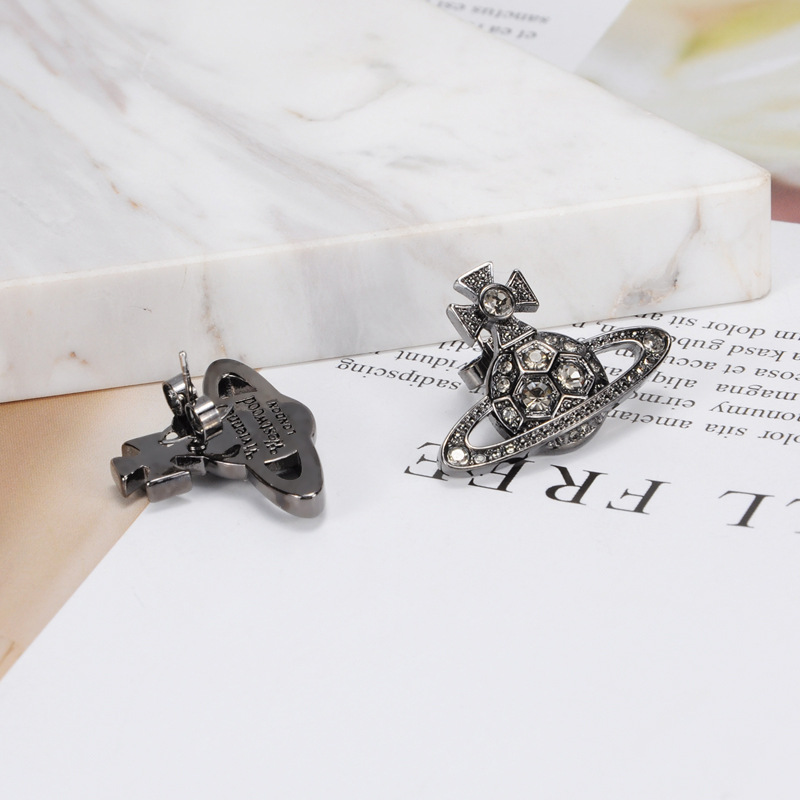Vivienne Westwood honeycomb stud earrings with Diamond light luxury punk ins earrings