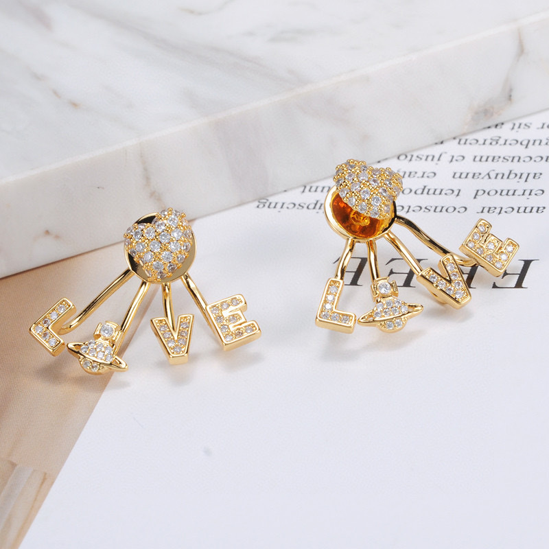 Vivienne Westwood LOVE full-jeweled stud earrings personality punk