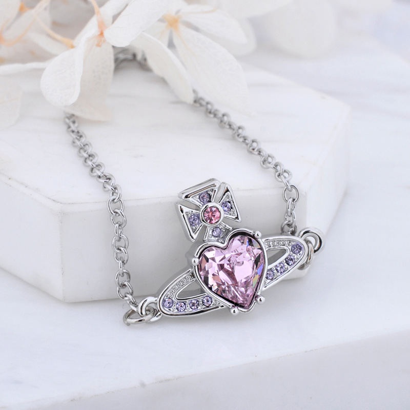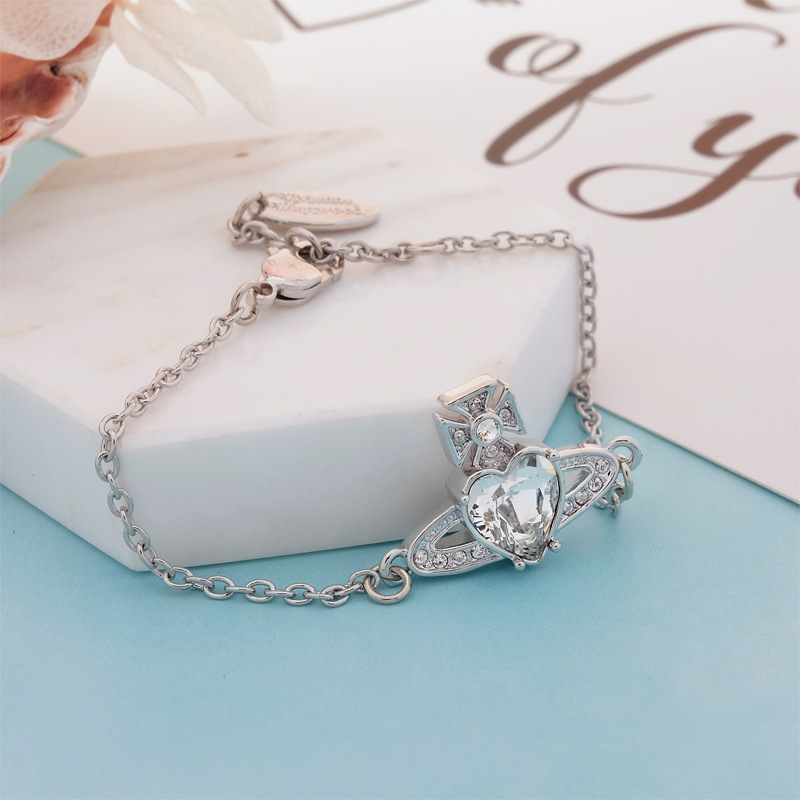 Vivienne Westwood loving heart zircon bracelet affordable luxury style high sense birthday gift
