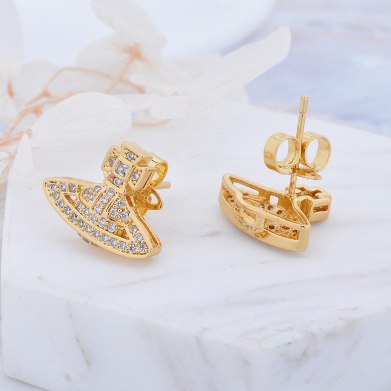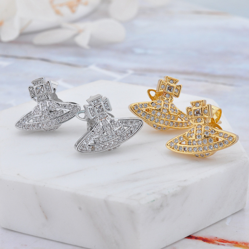 Vivienne Westwood luxury romantic fine zircon-embedded earrings