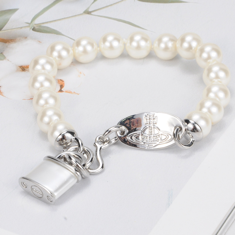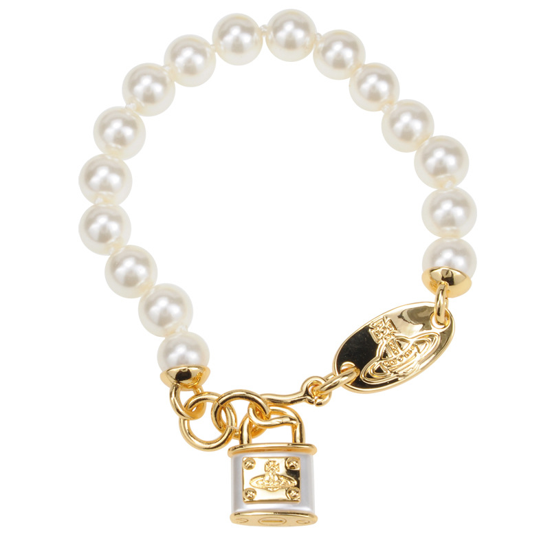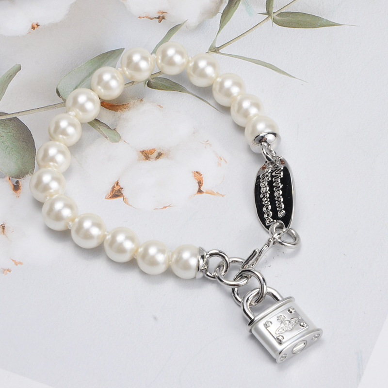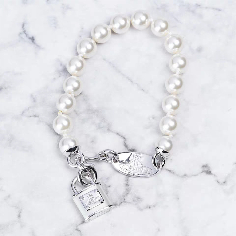 Vivienne Westwood resin lock head pearl bracelet female niche high sense