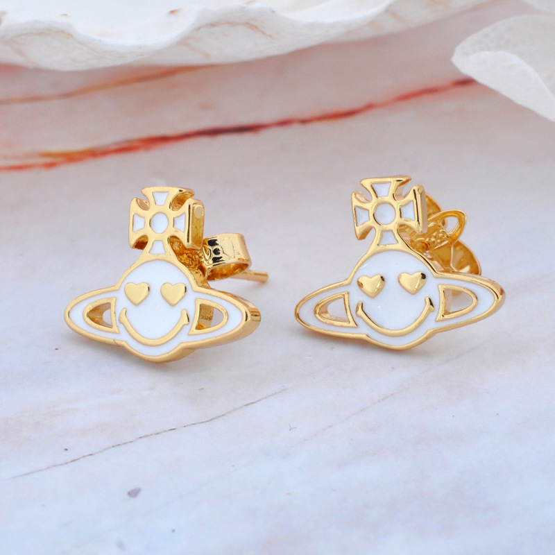 Vivienne Westwood smiley face ear studs personalized European and American punk earrings