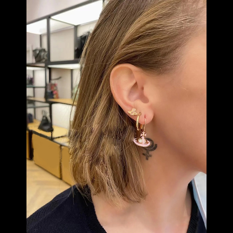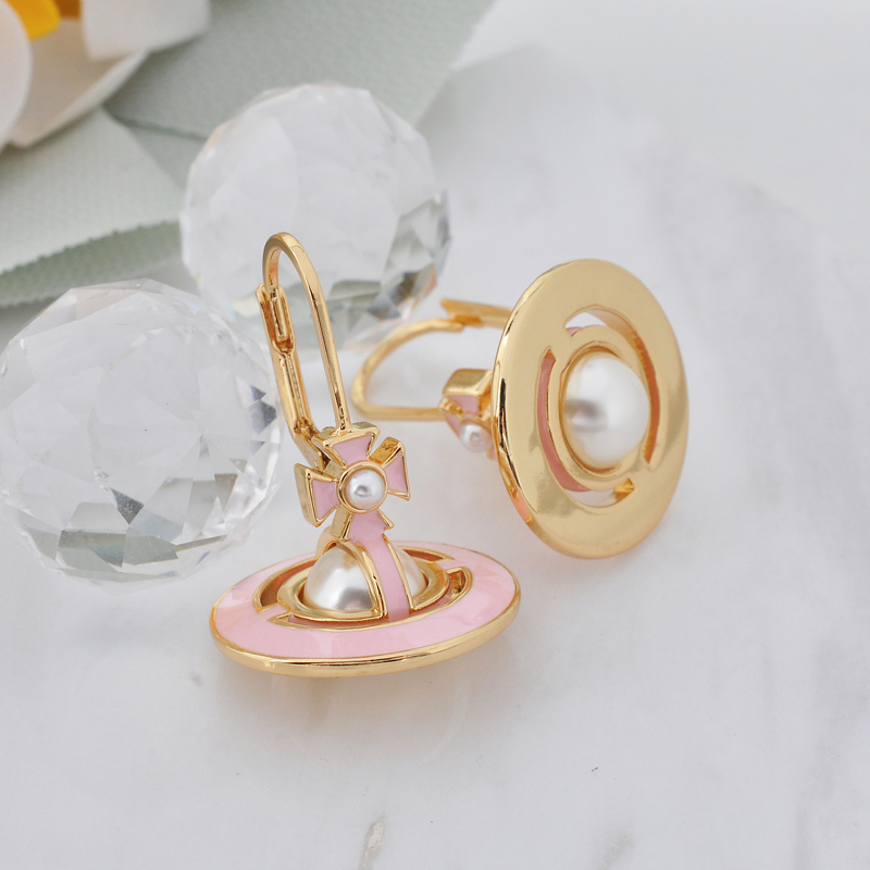 Vivienne Westwood solid color paint Pearl stereo earrings