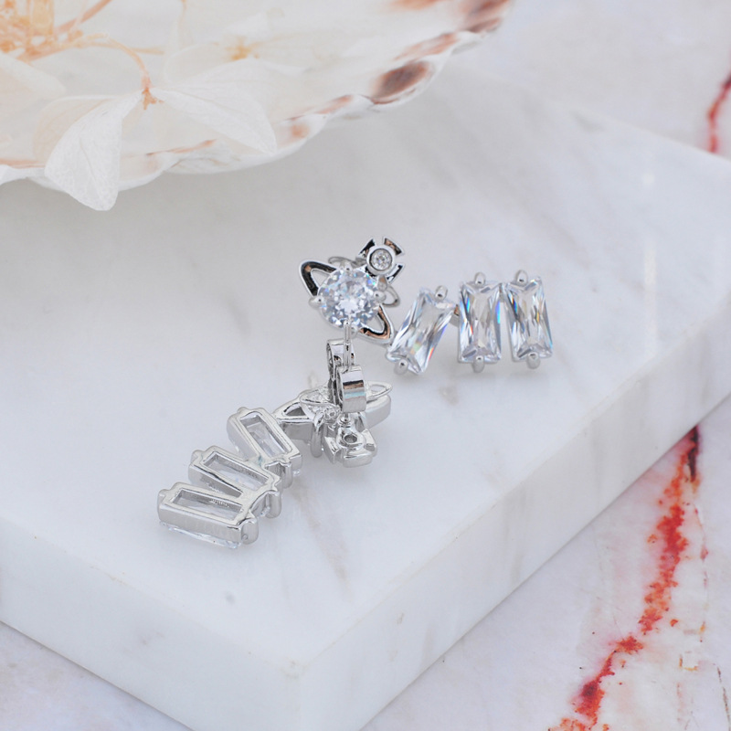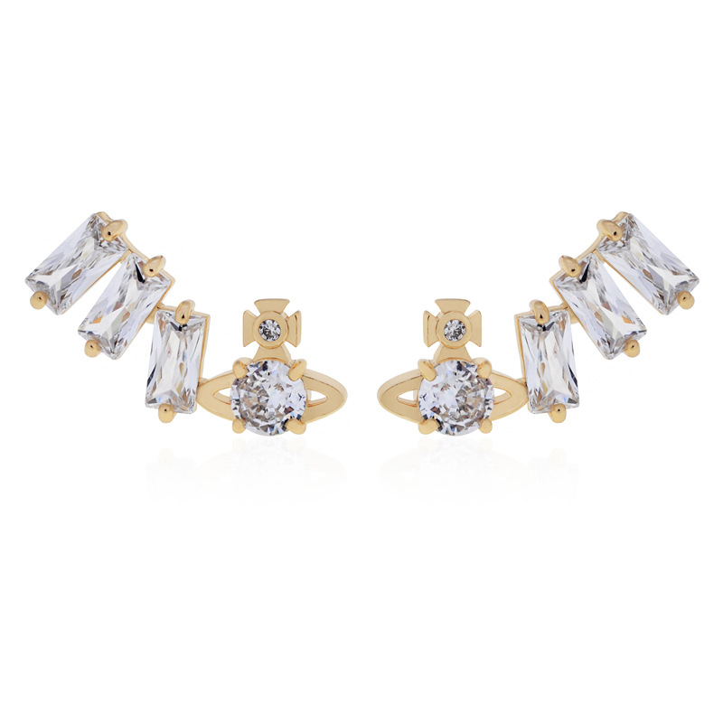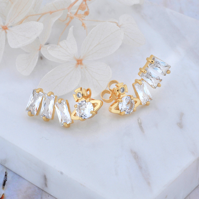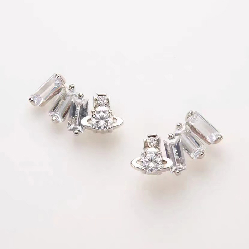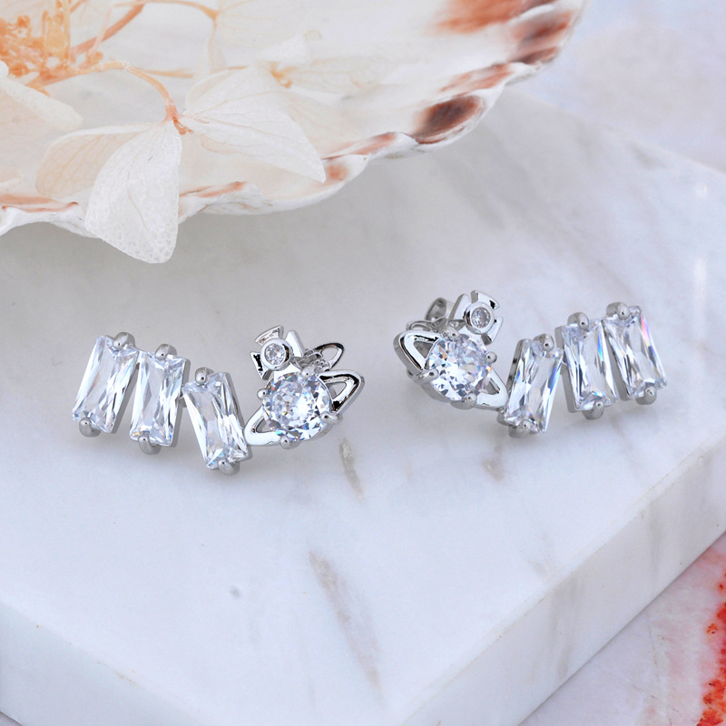 Vivienne Westwood square diamond Zircon stud earrings ins luxury High sense
