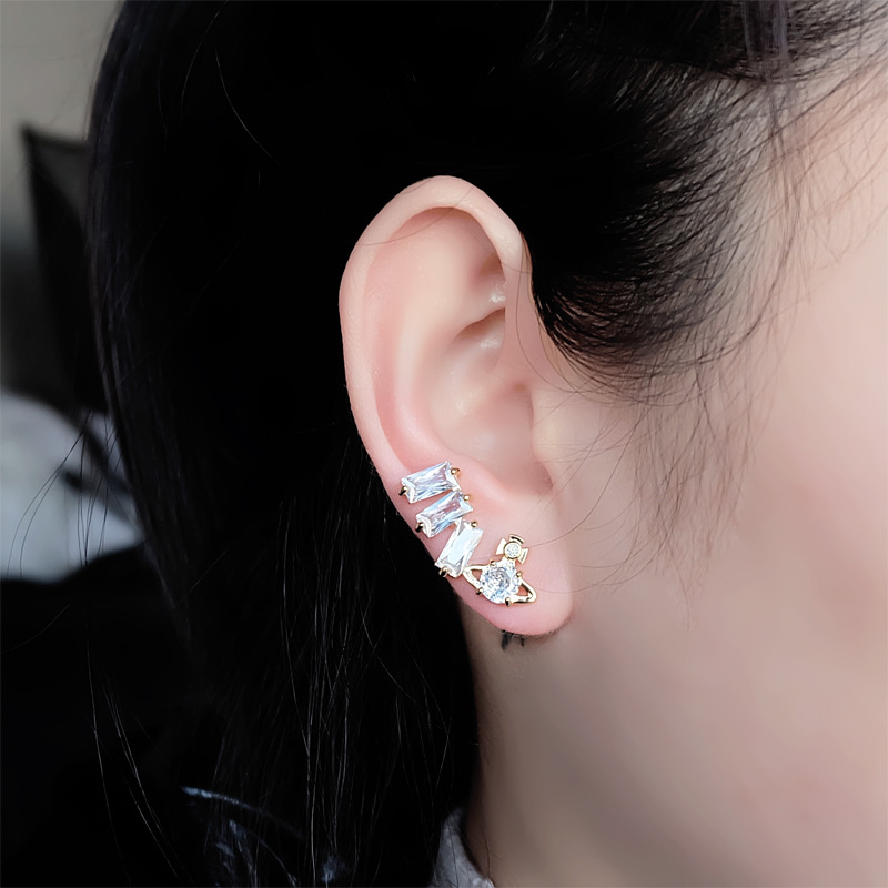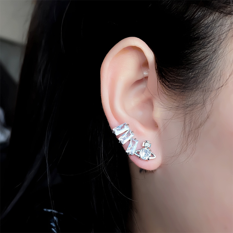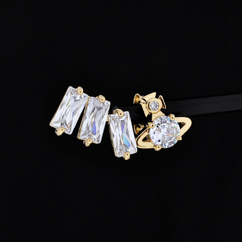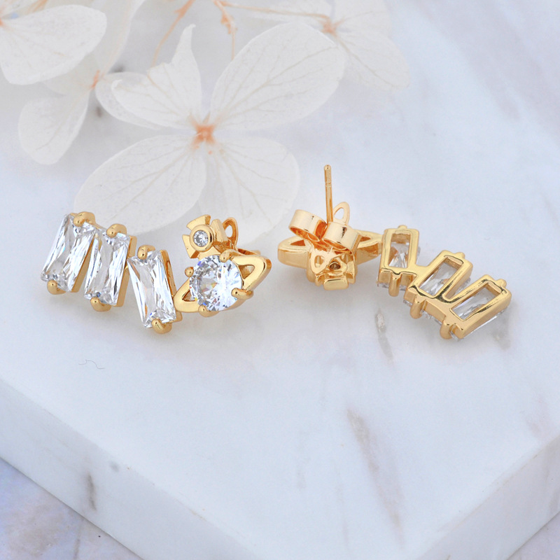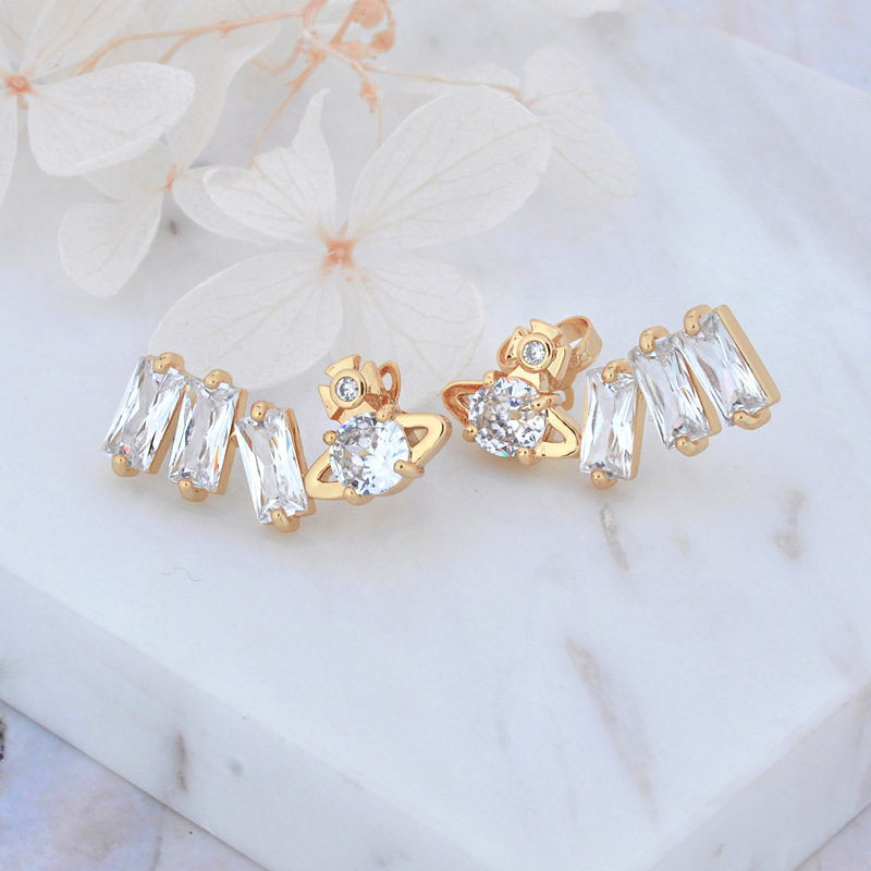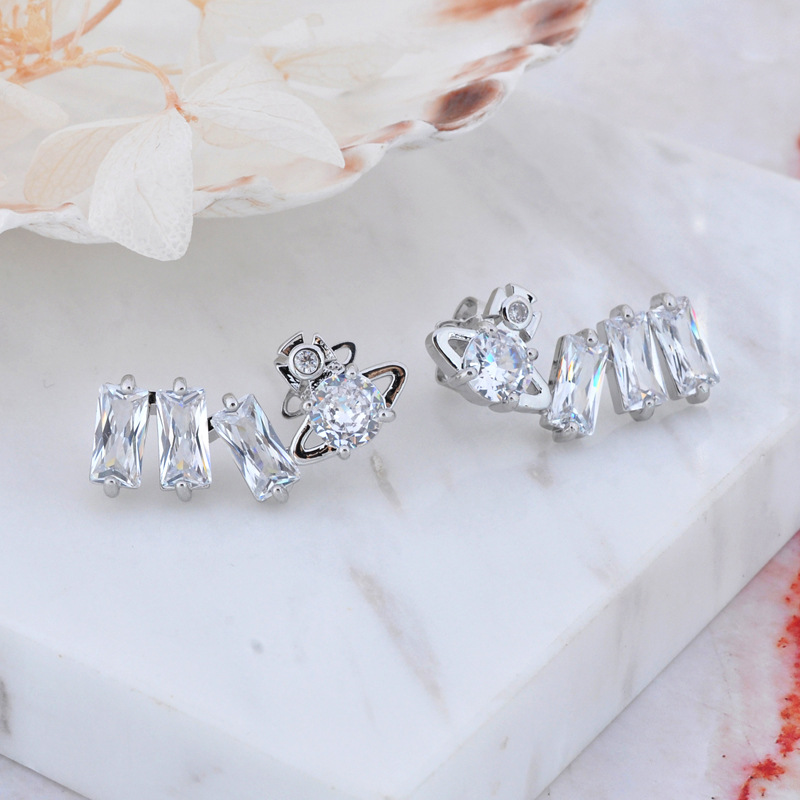 Vivienne Westwood square diamond Zircon stud earrings ins luxury High sense