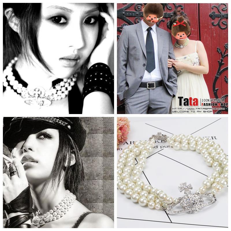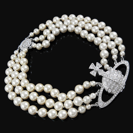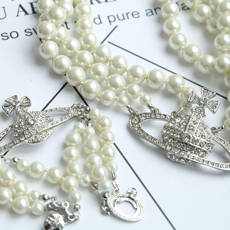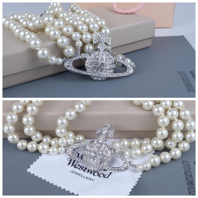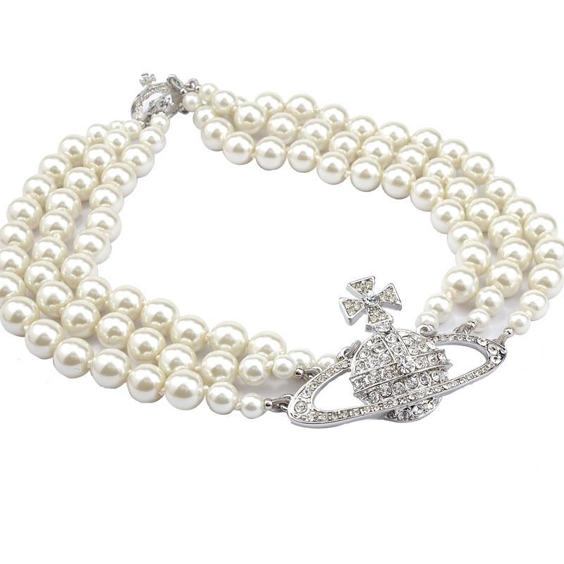 Vivienne Westwood three-layer Pearl silver ORB necklace exquisite high sense
