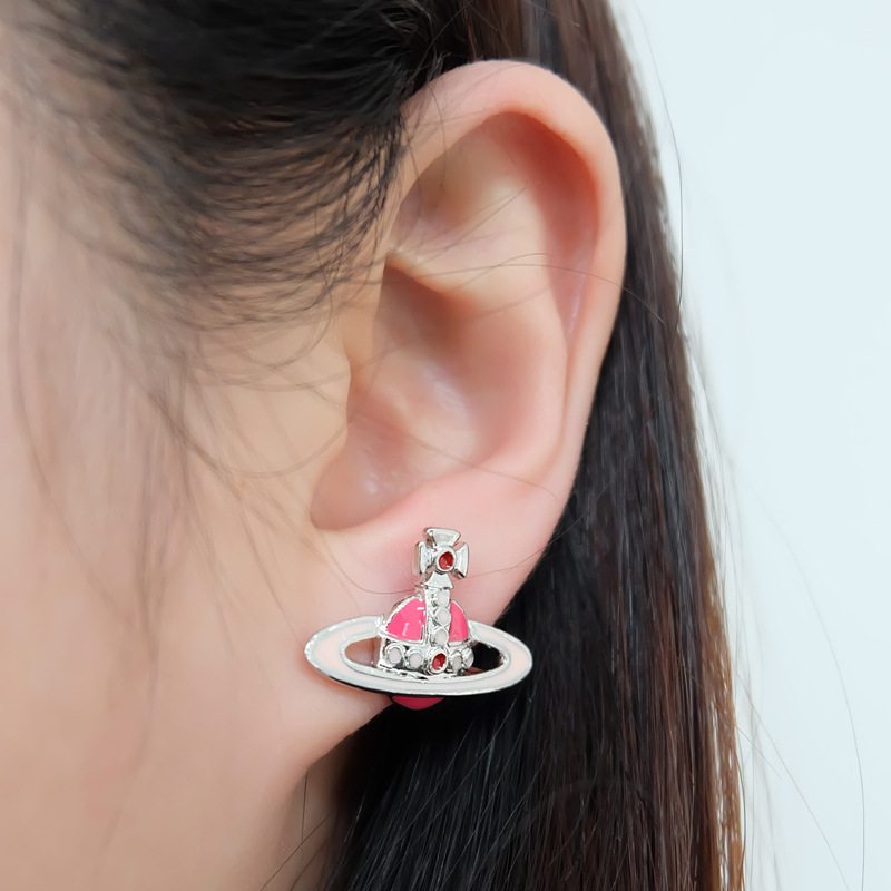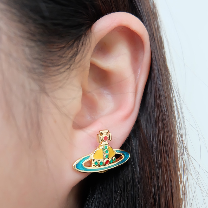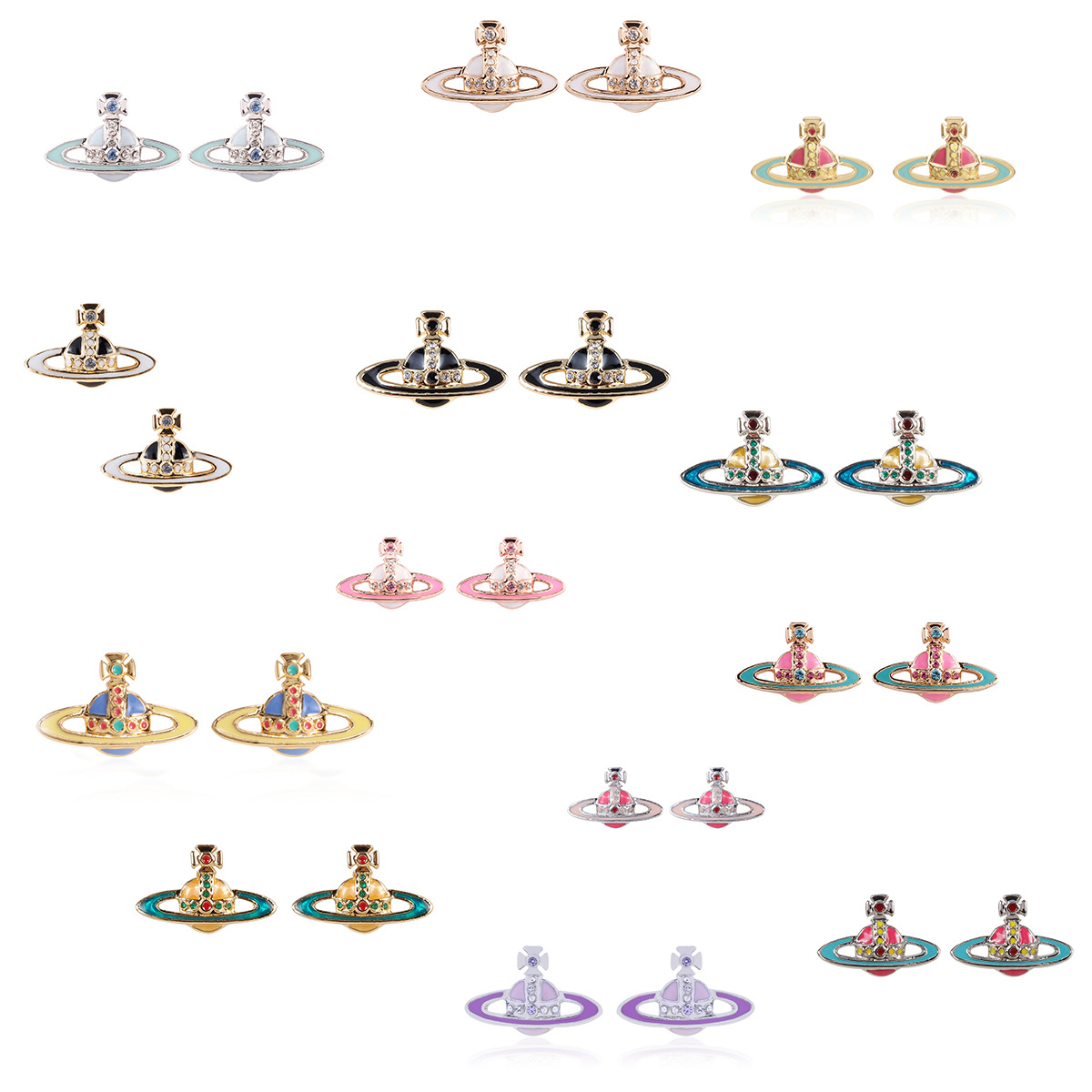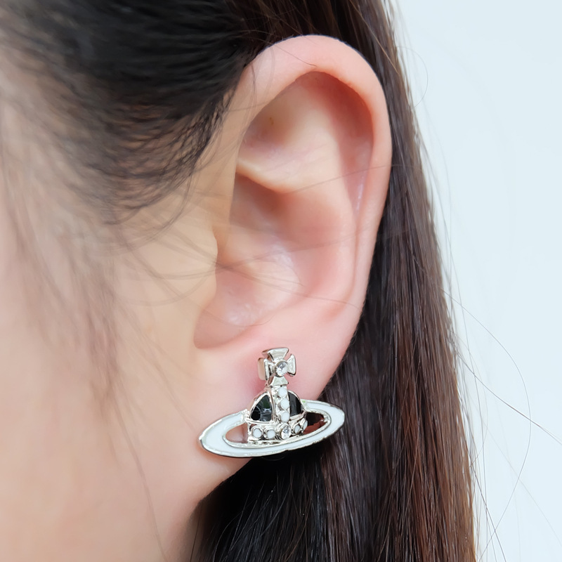 Vivienne Westwood two-tone epoxy Japanese and Korean inlaid Diamond affordable luxury fashion earrings